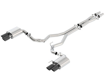WITHOUT Active Valve Exhaust. NOT recommended for use on Convertibles. 3" diameter system. System contains a merge X-Pipe for increased performance and improved sound. System features BORLA(r)'S Polyphonic Harmonizer Technology which utilizes patented units that contain pipes of different diameters and lengths to create multiple exhaust notes that harmonize to deliver a clean, rich, full-bodied sound to the BORLA(r) mufflers. The mufflers then enhance this sound to the character and volume appropriate for our Touring, S-Type and ATAK(r) systems. This system also features a black chrome finish on T-304 stainless steel tips. Using BORLA(r) Stainless Steel Polish p# 21461 is NOT recommended with these black chrome tips. We suggest cleaning the tips with hot water and a microfiber cloth. BORLA(r) Cat-Back(tm) and Axle-Back exhaust systems feature patented straight-through and multi-core technology designed to unleash hidden horsepower. Increased exhaust velocity adds power, driving excitement, fuel economy, and the distinctive BORLA(r) Sound of Power respected by motoring enthusiasts everywhere. Each system is built from premium T-304 stainless steel, superior to T-400 series knockoffs (such as 409), to give you the absolute best in performance and durability. Ultra-smooth mandrel bends ensure maximum flow& power, and precision computer-controlled CNC manufacturing ensures an accurate fit. Best of all, BORLA(r) stands behind every system with a Million-Mile Warranty. Just what you'd expect from the world's most experienced (and most winning) exhaust brand.